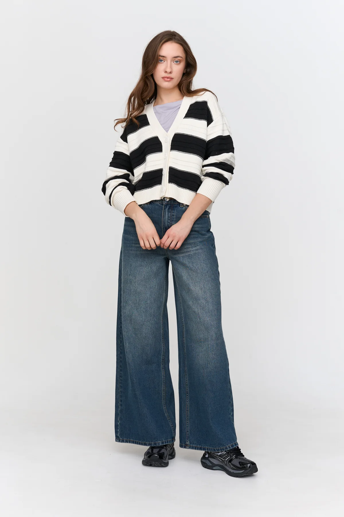 • Πλεκτή ζακέτα με ασπρόμαυρες ρίγες.