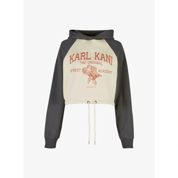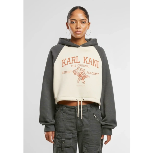 KARL KANI WOVEN SIGNATURE STREET ACADEMY CROP RAGLAN Γυναικείο Φούτερ - Εκρού / Μαύρο